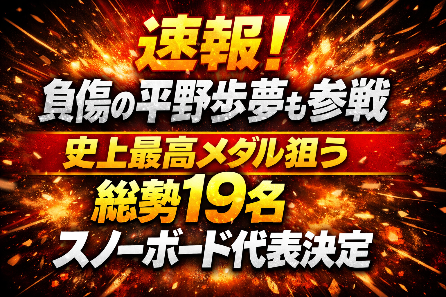 負傷の平野歩夢も参戦、史上最高メダル狙う総勢19名スノーボード代表決定