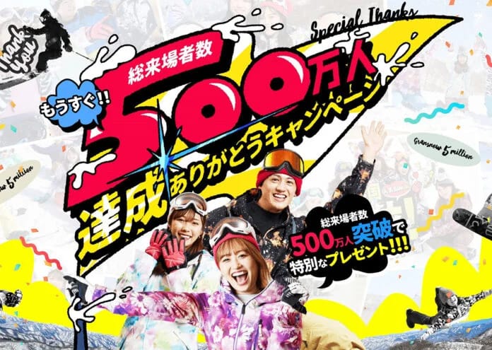 【ついに総来場者数「500万人達成」へ!開業55周年目を迎えた「グランスノー奥伊吹」のスキー場が、この冬の500万人達成に向け「総額2000万円分」の豪華プレゼント応募や、有名人が訪れる超スペシャルキャンペーンを実施!】